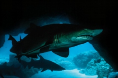 約3億6000万年前の海を泳いでいたサメの頭骨とほぼ完全な骨…