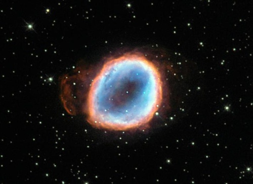 死にゆく星が最後の力を振り絞り、ガス雲を虹色に照らし出している。末期の激しい活動を1万年ほど続けたあと、この惑星状星雲NGC 6565は冷えて小さな白色矮星になる。
