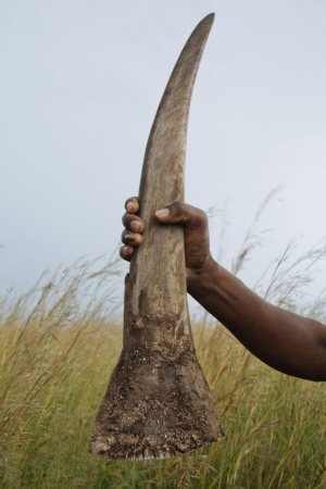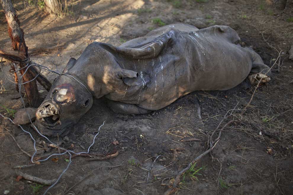 狩られたサイの角。南アフリカ、クラークスドープにて撮影。2012年に『ナショナル ジオグラフィック』誌に掲載された記事によると、4kgの角は、闇市場で36万ドルで売れる。(PHOTOGRAPH BY BRENT STIRTON, REPORTAGE FOR WWF/NATIONAL GEOGRAPHIC)(参考記事:「シロサイの角、国際年間写真賞2012」)