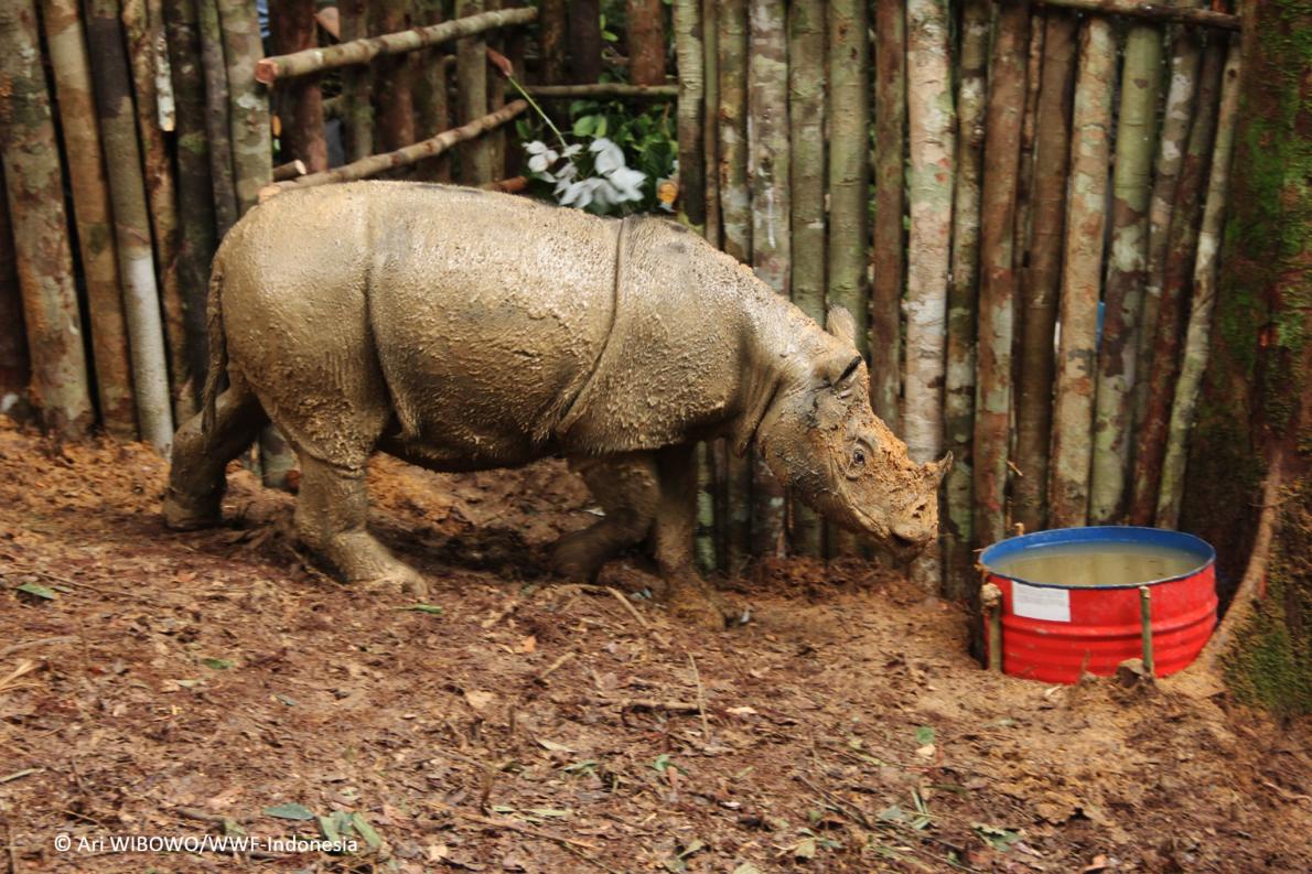 スマトラサイは、あとわずか100頭ほどしか生存していない。(PHOTOGRAPH BY ARI WIBOWO, WWF-INDONESIA)