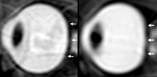 宇宙に数カ月間滞在していた7人の宇宙飛行士では、眼窩の脳脊髄液の量がかなり多くなっていた。そのせいで宇宙飛行士の眼球の後ろにかかる圧力が高くなり、眼球の後ろ側を平たく押しつぶして、視神経の突出も顕著になっていたのだ。