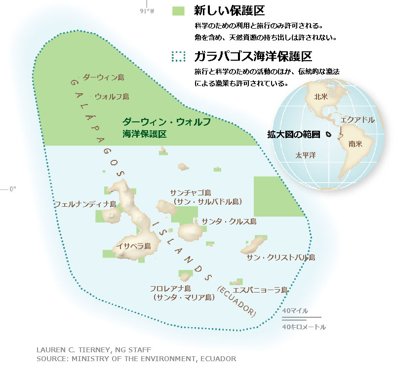 ガラパゴス国立公園のこの海域は、一切の漁業が禁じられている海洋保護区だが、世界で最もサメが多い海域でもあるため、アジア向けのサメのヒレ(フカヒレ)と肉を狙った密漁が後を絶たない。サメの個体数は世界的に減少傾向にあり、サメ・エイ類の25%以上が絶滅の危機に瀕している。(参考記事:「ガラパゴスに全面禁漁区、フカヒレ密漁の増加受け」)
