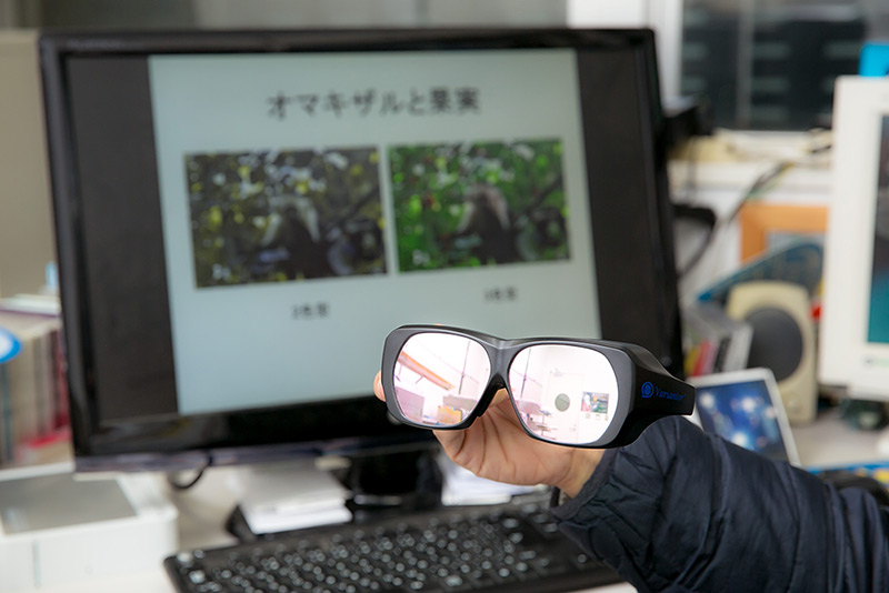 河村さんが取り出したのは、特殊なフィルターを使ったサングラスのようなものだ。バリアントールと呼ばれていて、ヒトが擬似的に2色型色覚を体験するためのものだ。それを装着すると、パソコンの画面の色の様相がかなり変わってしまう。元もと赤だった部分が黒っぽくなって、緑が黄色っぽくなる。細かな色の識別が難しくなるが、やはり白黒というのとはまるでちがう。